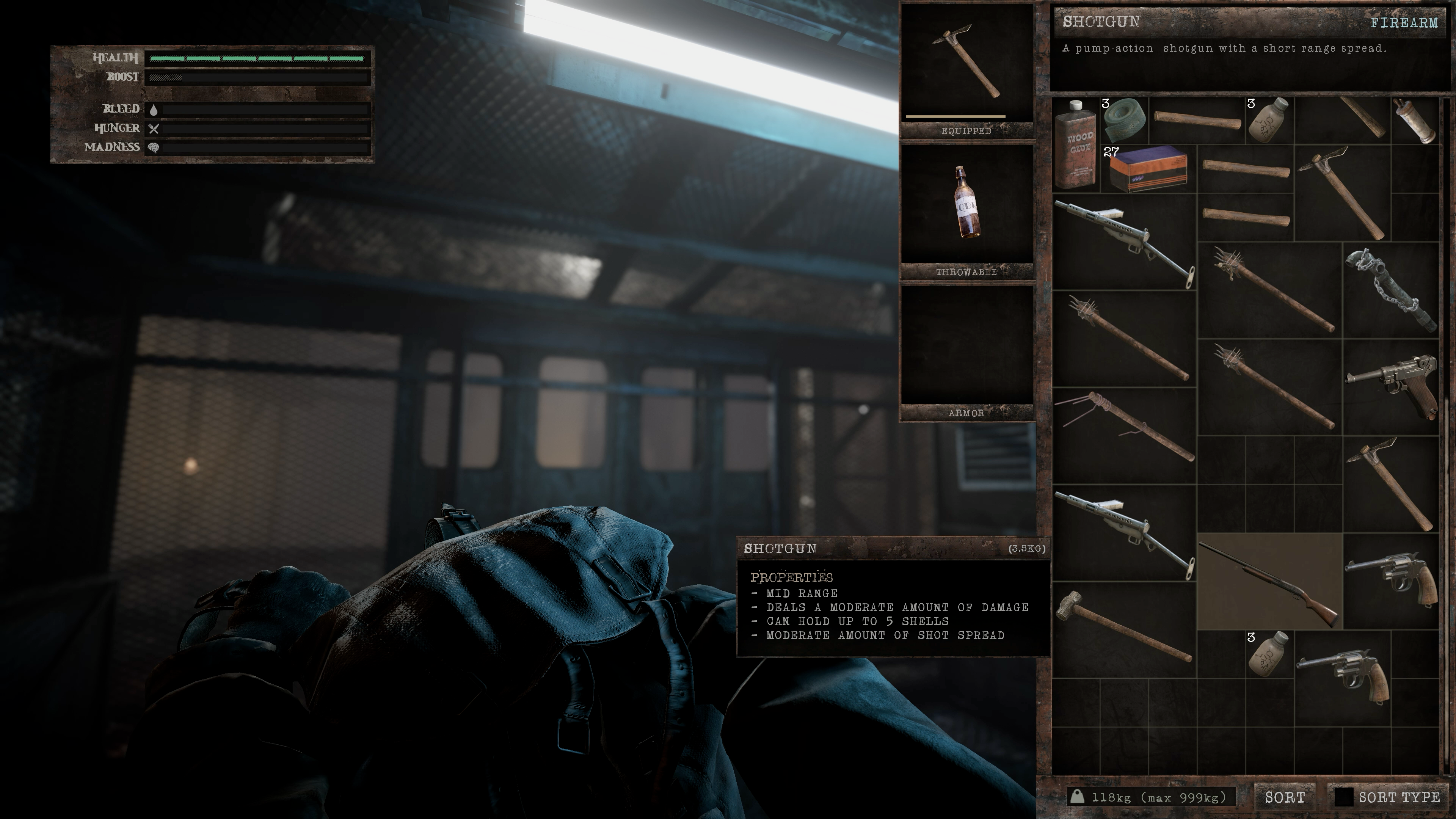 - La gestión de recursos es una parte central: balas, vendas, botellas, ...