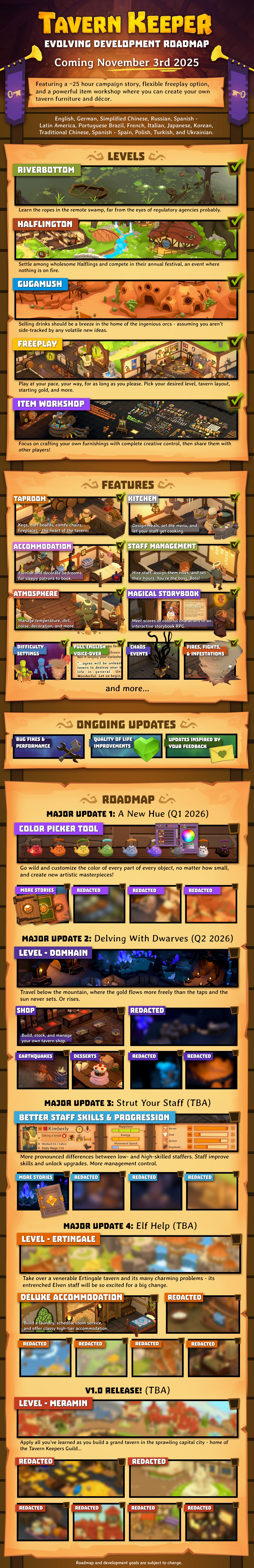 * ¡La espera llega a su fin! Tavern Keeper, el encantador simulador de tabernas de fantasía de Greenheart Games (creadores de Game Dev Tycoon), se lanza en Acceso Anticipado el 3 de noviembre de 2025 en Steam.